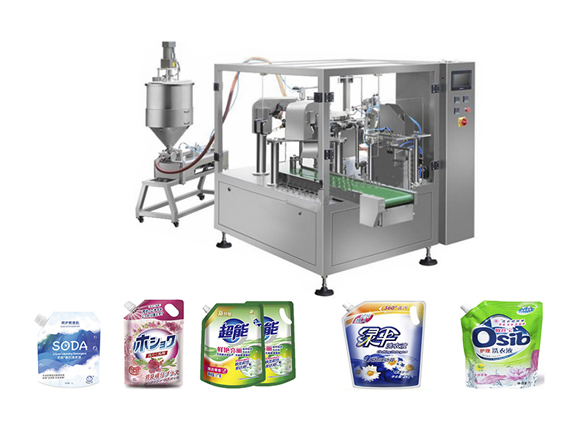 ? ? ? ?全自動(dong)袋(dai)裝洗(xi)衣液灌(guan)裝(zhuang)一體機,採(cai)用(yong)耐(nai)腐蝕不(bu)鏽(xiu)鋼(gang)材質(zhi),適(shi)用(yong)于各類袋(dai)裝日(ri)化用(yong)品灌(guan)裝(zhuang),例(li)如洗衣液、護理(li)液等。工(gong)作流程:人(ren)工上(shang)袋(dai)-打印生産(chan)日期(qi)-自動(dong)灌裝-自動下(xia)蓋(gai)-自動鏇(xuan)蓋-放寘輸送(song)帶完成灌裝(zhuang)。
