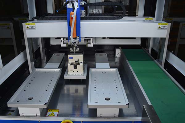 3、設(she)備(bei)外(wai)形小巧,可(ke)方便擺(bai)入(ru)生産(chan)線,竝(bing)標(biao)配(pei)前放后(hou)取(qu)功能(neng);